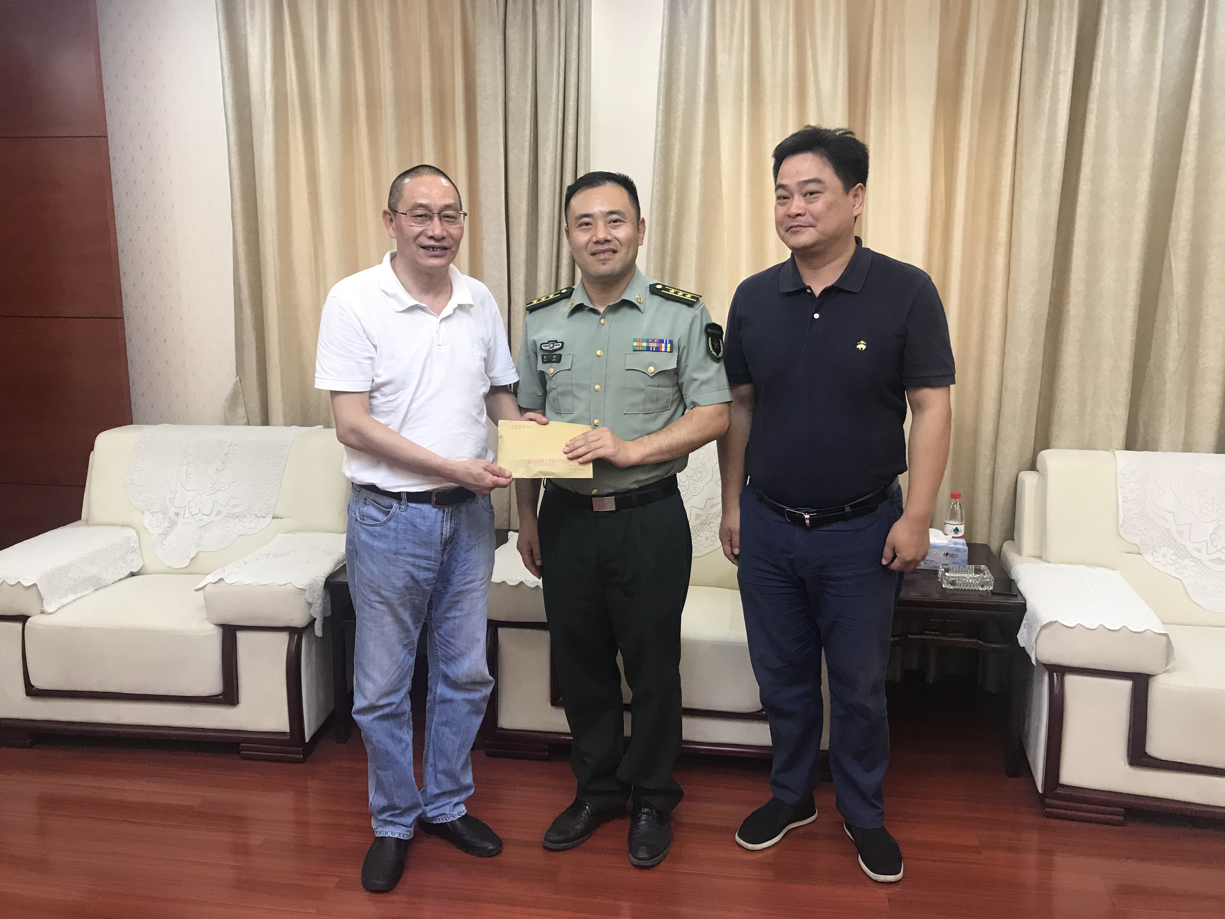 ??在“八一”建軍節(jié)來(lái)臨之際,7月29日上午,集團(tuán)公司開(kāi)展了慶“八一”擁軍慰問(wèn)活動(dòng)。集團(tuán)公司黨委副書(shū)記、武裝部部長(zhǎng)湯洪潮,武裝部副部長(zhǎng)梁柱一行代表集團(tuán)公司向西湖區(qū)人武部全體指戰(zhàn)員送上了節(jié)日的祝福和誠(chéng)摯的問(wèn)候。(武裝部/羅來(lái)春)